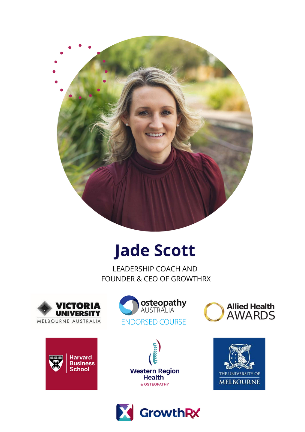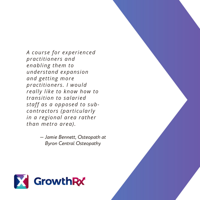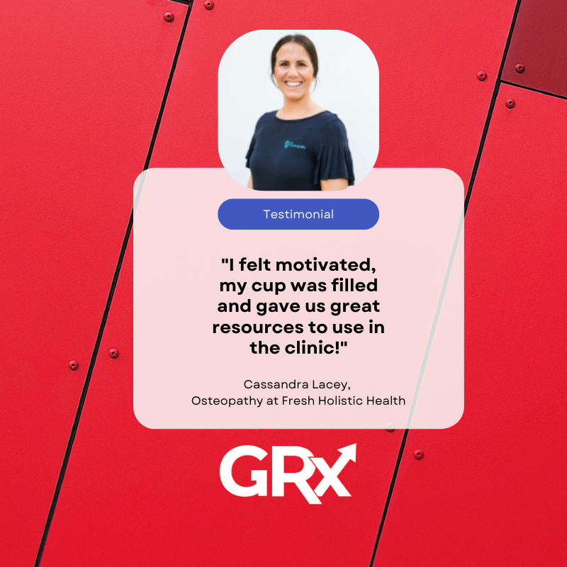 Each week we stream 'GRx LIVE' to our GrowthRx Facebook Community with industry leaders covering a wide range of topics. These powerful micro-courses and educational webinars benefit all practitioners, from new graduates to successful business owners. Our mission is to help others learn, connect, and reflect so that we can grow collectively as healthcare providers. Our world-class speakers usually charge for their valuable time, education, courses and expertise. We are extremely grateful for their time and generous resources. We all have someone doing something better than ourselves that we can learn from. Thank you for joining us, and for your ongoing commitment to continuing professional development. United we are stronger!